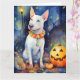 Halloween Bull Terrier Med Pumpalåtar Skrämmande Kort