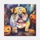 Halloween Bulldog med pumpor Magnet