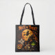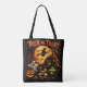 Den här livliga halloweenillustrationen samlar alla de klassiska spökiga ikonerna i en djärv och iögonfallande scen. En lysande fullmåne sätter scenen när en häxa flyger över himlen, omgiven av fladdrande fladdermöss. Nedan reser sig ett spökhus med lysande fönster från ett skuggigt landskap med kala träd och sneda gravstenar.