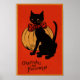 Hälsning för Hallowen'en A Black cat med en polka-punktbåge och en stor pumpa på orangens bakgrund från ett vintage Halloween-vykort från 1912.