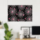 En poster med ett sött, sömlöst mönster med vita kakor och rosa spindlar.