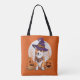 Cute Welsh Corgi i en lila häxor med jack-o-lyktor för Halloween.