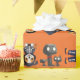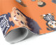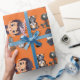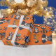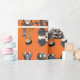 Det här är en orange dominerad Halloween-omslutning papper med några söta Halloween-illustrationer som består av hundar och barn.