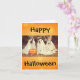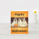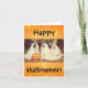Ett lustigt Halloween-kort med hundar på söta spökkostymer och en pumpkin. Bus eller godis!