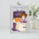 Halloween söt häxa med pumpkin Jack o lantern och häxhatt.