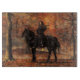 Här är en Halloween-anda, ett mänskligt uttryck för säsongen: En svart robed kvinna, på baksidan av en halvnattssvart häst, håller ett tänder i en rik i gulten, orangen och röda löv av fall. Hennes ansikte är halvdold bakom en mörk huva, men ändå kan du se att blicken är direkt tillbaka på dig, tittaren. Den mörk som steeds ser direkt på dig också, ångblåsning från näsborrar, en mycket argare bild än den som dess fredliga rider ger.