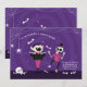 Ett roligt Halloween-festinkallande som är extra bra för en danstillställning. Den lila bakgrunden har ett spindelnätsformat valv, spindlar, dödskalle och ben, fladdermöss och en söt vampyr och skelett. (<a href="https://www.freepik.com/free-photos-vectors/background">Bakgrundsvektor skapad av freepik - www.freepik.com</a>). <br/><br/>Kortet är lätt att anpassa med din egen text, typsnitt, typsnittsfärg, pappersform och val av sex olika papperstyper.<br/><br/>Inte exakt vad du söker? Alla våra produkter kan anpassas för att möta dina behov utan extra kostnad.<br/><br/>Kontakta oss helt enkelt på askcottonlamb@gmail.com.<br/><br/>Koordinerade produkter finns tillgängliga: fråga oss!