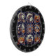 Denna klara och färgstarka illustration har en samling av Halloween-temade konstruktioner som är centrerade kring pumpor. Det finns pumpor med ansikte, pumpor med häxor och pumpor omgivna av fladdermus och stjärnor. Andra inslag är spöken, döskallar och snurrande mönster. Bildens allmänna stämning är festive, spooky, och något högre, perfekt för Halloween firande.
