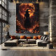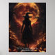 I hjärtat av Halloween-natten står en ensam häxa framför en brinnande skördemåne, omgiven av illavarslande pumpor och viskande träd. "Den häxiga timmen" frammanar den kusliga skönheten i oktober månadens mest hemsökta ögonblick - en perfekt blandning av mörker, mystik och kuslig magi.