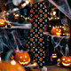Halloween Dödskallar, pumpor och blommor Svart Leggings