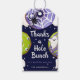 Våra Halloween Donuts Tack Anpassade Gift-Märkre i Hål-bänken visar färgstarka halloween-dekorerade donötter tillsammans med texten "Tack en Hål-bänk" och "För en jättelik bra!" i roligtens lila-typsnitt. All text kan uppdateras för att skapa en söt märkre för alla dina party favors- och presentbehov!