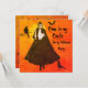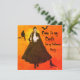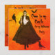 Inbjudan till halloween fest med Dracula i en lång, svart bläckbehållare med ljussken. Tre svarta fåglar och Kom till min slott för Halloween fest. Baksida för att fylla i informationen med Dracula's Castle i bakgrunden.