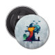 En runda flaska-öppnare med en coola-hallopolbild. Sätt på en grått grunge-bakgrund. En stor fågelskrämma med ett pumphuvud, med en häxhatt. Han har en hotfull flin med tatuerade plakat och står i en kyrkogård med en kråka som skriker på arm. Fladdermus flyger ut i avstånd, fullt i bakgrunden och ett ensamt uggla med glansande ögon sitter på gravsten.