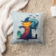 En kudde med en illustration av coolan. Sätt på en grått grunge-bakgrund. En stor fågelskrämma med ett pumphuvud, med en häxhatt. Han har en hotfull flin med tatuerade plakat och står i en kyrkogård med en kråka som skriker på arm. Fladdermus flyger ut i avstånd, fullt i bakgrunden och ett ensamt uggla med glansande ögon sitter på gravsten.