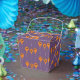 Perfekt party förråd till Halloween - denna orange och lila stripe-behållare är underbar för Halloween fest-behandlingar.
