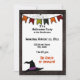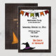 Anpassa framsidan och baksidan av denna Halloween-festinbjudan som skapats på en svart prickig grungebakgrund, med en dekorativ festbanner, söt häxhatt och ett spindelnät. Redigera bara dina detaljer i den enkla Zazzle-textredigeraren. Lägg till tallrikar, koppar, servetter och mer från en stor samling som koordinerar med denna design.