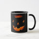 Kreativ Halloween fest mugg eller presenter har en rolig Jack-o'-lantern som tänds för säsongen.