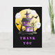 Söt Halloween tack-kort med ett spökhus, fullmåne, träd, söta spöken och fladdermöss. Perfekt för en Halloween-fest. Orden kan ändras för att passa dina egna detaljer eller krav