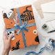 Halloween fest-monster som slår pappert presentpapper