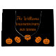 Den här moderna, snyggt presentsäcken har en jack-o-lantern som håller på att falla i skymundan på framsidan. Det är en enkel presentsäck att redigera och göra den till perfekt för din händelse