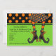 Halloween-häxor i stripy-lager och stövlars inbjudan ... med lustiga häxor och stövlar på en ljus grönt-bakgrund... levereras komplett med vita kuvert ... festinbjudningar från Ricaso i bilder med CU-licens delightful-doodles.com