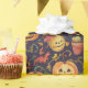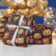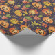 Halloween Wrapping Papper - Design No. 2: En pumpkin och cactus inspirerade till utformningen på en mörk blått bakgrund. Med spindelnät och vinodlingar får du en avslutande knuff till designen.