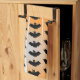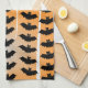 Roligt kökshandduk för Halloween med min plan för svart fladdermus på orange och vit bakgrund.
