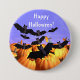 Ett stift med min roligt originalbild av fladdermus som flyger ut från pumpor med anpassadet "Happy halloween!"!
