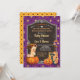 Cute Halloween-Bus eller godis-lilla pumprat med flicka-duschinbjudan med trevliga konstruktioner. Perfekt för Fall, Halloween-säsong. Hämta den här söta inbjudan nu! Tema: Halloween - bus eller godis. Stil: Vintage med en aning modern chic. Färg: Lila, guld, orange, svart. Grafik: pumpor, bocksäck, matriser, guld-stjärnor och styrbord (andra hudtoner och gender finns i butiken)