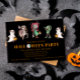 Vänner i inbjudan till dig som halloween Costume födelsedagsfest i stil med den här häpnadsväckande halloween-inbjudan med spooky-monster på en svart bakgrund som är perfekt för vilken kostym party som helst.