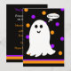 En Halloween-Födelsedagsfest förtjänar en underbar Halloween-inbjudan och det här vänliga spöket som omges av Halloween färgad polka dots passar in på räkningen. Copyright henishouseofpaper
