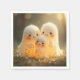Tre vackra spökliknande varelser med rosiga kinder och leende ansikte står tillsammans i ett mjukt, glödande ljus
