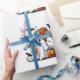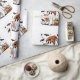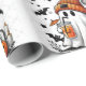 Halloween Ghost Enjoying Autumn Vibes Wrapping Papper. : Halloween, spöke, höst, pumpa, ljus, fladdermus, beanie, söt. Bilden har en vit teckning av ett spöke som bär en orange och en vit randig beanial med en pom-pom. Spöket håller en dryck med halm och omges av höstmatta föremål, inklusive en pumpkin med en sköld ansikte, två tända ljus och fallande löv. I bakgrunden flyger flera små fladdermus. Bilden har en mysigt och festlig känsla som passar för Halloween-säsongen.