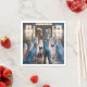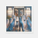 En grupp hundar klädd som vänlig spöken står utanför ett hus tittar på två stora hundar inuti