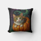 Halloween Ginger & White Kitten Riding a Pumpkin Kudde