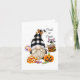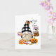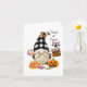 Söt gnom omgiven av godis och en vänlig fladdermus. Texten lyder "Trick or Treat".