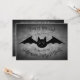 Cute inbjudan med tecknad stil svart fladdermus med stort ögon på framsidan och baksidan. De är i mörk grått och svart färg. Dessa är formulerade för familjer som samlas och har en gryta tur. Du kan ändra alla formuleringar. De kan även vara till för ett barns Halloween fest. Texten på baksidan är vit eftersom den är mindre och det kan vara svårt att se om den lämnades svart.