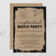 Halloween Grannskaps Blockfest Inbjudan - Handritade grafik på en underbart rustik kraftbakgrund för din fest.