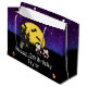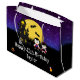 Den här roligten och den här skämtsamma presentpåsen kan vara personlig med ett namn eller en titel, som dotter, barndotter, brorson, brorson osv. Den har söta vampyrer bredvid ett hemsökt hus. I bakgrunden finns ett måne med fladdermus och en lila natt himlar med stjärnor. Texten kombinerar dekorativt och seriöst typsnitt för en snyggt och ett modernt utseende. Det här är perfekt för Halloween.