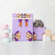 happy Halloween cute ghost and scary skull wrapping paper ,modern purple and brown white Halloween groovy bow ribbon wrapping paper.