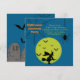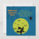 Costume Party-inbjudan med en spooky-design. Fladdermus, spindlar och en flygande häxa är vad du behöver. Justera informationen på fram- och baksidan av kortet till din egen för att göra en spooky Halloween fest inbjudan..