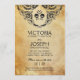 Denna halloween-inbjudan till bröllop har en vinjett bakgrund med ett par svarta spetsiga dödskallar och korsade ben. För fler fina designs besök www.zazzle.com/vginvites eller www.vginvites.com