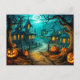Det här unika vykortet har ett hemsökt hus i månljuset. Var vänlig och lägg till din egen unika text och adress på baksidan av detta Halloween-vykort.