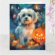 Få din lurviga vän redo för en hurlande bra tid med denna bedårande Halloween-design inspirerad av hundar! Med en spöklik hund med pumpor är denna design perfekt för djurägare som vill inkludera sin fyrbenta familj
