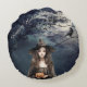 Halloween-häxa i månljus rund kudde