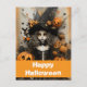 Halloween-häxa med pumpor vykort