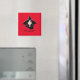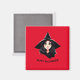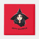 I designen visas en bild av en ung häxa med svart hår och en svart spetsig hatt, tillsammans med ord "Happy halloween!". Utformningen baseras på en digital illustration.