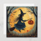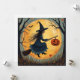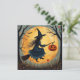 Halloween häxa på kvast och fullmåne julkort