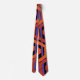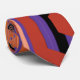 Denna slips har en geometrisk utformning av hexagoner i fyra skuggor av orange på fält i svart och lila rand.