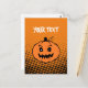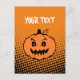 Anpassningsbar helgdag vykort med tecknad stil-pumpa för Halloween. Övertoningseffekten Svart och orange som används på bilden. Tom i baksidan för handskrivna meddelanden.